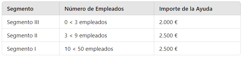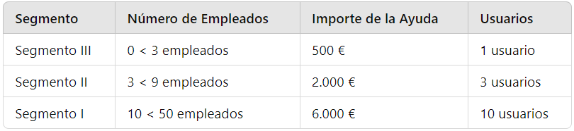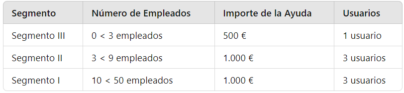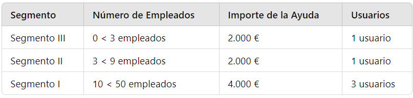 - 0 < 3 empleados: 1.000€ ( incluye 1 dispositivo